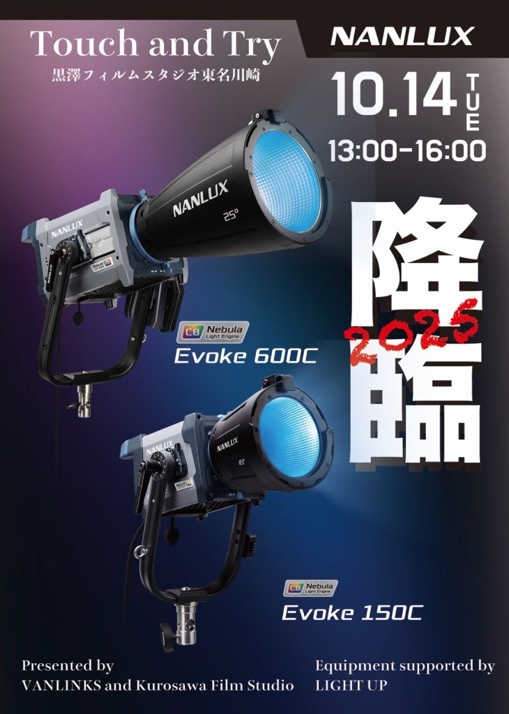 NANLUXの新製品「Evoke600C/150C」のタッチ&トライイベントが開催されます。Evoke5000Bを始めとした他のNANLITE製品も展示されますので、この機会にぜひ足をお運びください。