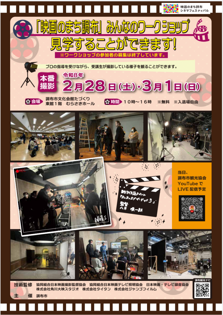 2月28日、3月1日の本番撮影(@調布市文化会館たづくり)の様子は一般の方の見学も可能で、調布市観光協会のYouTubeでのLIVE配信も予定しております。