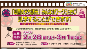 現在開催中の「映画のまち調布シネマフェスティバル」にて行われます、「みんなのワークショップ」に照明協会は今年も協力しています。吉角荘介副会長が照明技師を務め、一般の受講生とともに作品を作り上げます。 2月28日、3月1日 […]
